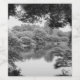 Svartvit, coola, unika naturfoto, sjö och skog i Shinjuku-trädgården i Tokyo. Det främsta syftet med detta fotografi är att skapa inspiration, lugn och lugn hos naturen. Fånga essensen av asiatiska, japanska trädgårdar.