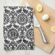 Kökshanddukar har vintage svart och vit dammliknande mönster har ornerade viner och ett par harar i en mittcirkel