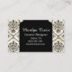 Dessa slå svartvita damastast visitkortar presenterar av en elegant damastast bakgrundsuppsättning vid retro svart ramar och en blandning av cursive och traditionellt typsnitt! Alla textfält är fullständigt anpassadet! Glöm inte att personifiera både bekläda, och baksida med ditt specificerar! Perfekt för en inre formgivare, dekoratör, händelseplanner, makeupkonstnär, hårstylist, salong eller någon med en kärlek av klassikerelegans! Dessa härliga visitkortar är säkra att göra ett hållbart intryck! Bilder som skapas av Dana Conditt och Karens, skrotar och diagram av digitalscrapdesigns.com och används med tillåtelse.