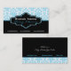 Svart turkos vitt affärskort från damm i insida, med turkosblått och vitt dammmönster. Grund är av fast svart färg. En svart och en turkos rand separerar de två delarna. Ditt företag/namn är skrivet på en elegant svart ram med vit och turkotisk kontur.