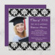 Skadad svart och vit, lila Studentfest Fotoinbjudan. Om du vill ändra storlek på och placera fotot klickar du på knappen "ANPASSA IT". Du kan justera texten efter dina behov - ändra teckensnitt, färg eller storlekare.