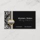 Svartvit dämpare med affärskorten för att fånga grått och öga i övertoningsbandet silver och hjärtat, med en elegant- och snyggt-design av ett svart och vitt (B&W) kompress-mönster i blommigten, ett silver grått-band med metalleffekt, ett hjärta med guld/golden kontur och ett typsnitt i vintage. Klassiskt men modernt samtidigt som trendiget. En modern, sofistikerad design som även kan användas av designers i mode, designers i insida/insida, stilister, skönhetssalonger, evenemangsplanerare, boutikägare med mera. Personlig använda eller professionell.