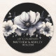 Utformning av ett enkelt svart och vitt blombröllop. Ett klassiskt men vismiskt utseende med svarta, grå och krämfärgade blommor med svarta teckensnitt och modern text. Redigera all text till din egen information. Perfekt för ett boho-bröllop med en modern tvist, en vinter- eller vårklassisk affär, eller till och med lite av en gotisk vibe. Elegant Black White Floral Round Paper Coaster