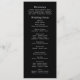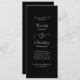 Det här minsta vita skriptet som skrivs ut på en svart bakgrund med en guld-ampersand är ett elegant-program för bröllopsdagen. Anpassa all information, inklusive information om ceremonier och deltagare på baksidan med samma typsnitt