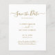 Personligen för budgetskript minimerar den moderna eleganten för icke-fotoannonsering i guld och vita bröllop spara datum till ett överkomligt pris för lågbudgetflygare. En ren designmall har en kursiv elegant med texten "Spara datum" i guld på den vita bakgrunden färg. ***NOTERA! *** BUDGETEN PAPPER/FLYER ÄR PAPPER. INGA ENVELOPES INKLUDERADE.** UPPGRADERA PAPPRA FÖR EN TEKER-PAPPER. *** Traditionell kartstock med kuvert: https://www.zazzle.com/elegant_script_minimalist_gold_and_white_wedding_save_the_date-256374875443284921 Den här klassiska kortets perfekt för ett par som vill spara datumet med en modern beröring, utan foto. Kontakta designern om du behöver hjälp eller matchande artiklar.