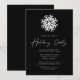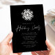 Moderna inbjudningar till julfesten med en vit snöflinga överst på designen med en fin svart bakgrund. "Julfest" visas i ett vitt handskript. Anpassa inbjudningarna till julfesten för snöflingor med din party-information.