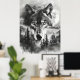 Svartvit fantasy Varg Mountain Måne Poster