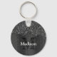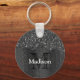 Svartvit faux sparkles rustik wood Monogram Nyckelring
