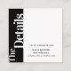 Informationskortet för den moderna, svarta och vita fyrkantiga händelsen bröllop. Perfekt för ett enkelt bröllop till behållans gäster som har informerats. Redigera det här kortet med ditt eget namn, bröllop-datum, händelsematerial och annan information. Andra matchande bröllop och händelseobjekt är tillgängliga. Designad av www.mylittleedenweddings.com