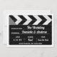 Ett modernt och roligt svartvit filmtemat bröllop spara datum. Den unika designen visningar de viktigaste detaljerna på Hollywoodregatets filmklipp/svarta tavla och innehåller utrymme på baksidan av kortet för att visning ett förlovning-foto eller ytterligare bröllop-detaljer.