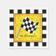 Njut av eller fira en tävla-händelse, vinna med den schackrade flagga eller skräddarsy. Dessa pappra party-blöjor kan vara personlig med en familj namn som kan anpassas till ett första namn eller annat ord. En svartvit flagga som kontrolleras med vågiga tecken centreras på en texturerad gult och har ett svart och vitt gräns som kontrolleras. Den röda orden innanför gräns och säg Tävling Fläkt, starta tävling och kontrollera flagga. Gröntens stjärnor är på bakgrunden. Underbar för alla typer av tävlor - bil, motorcykel, cykel, derby och mycket annat. Anpassade för en skräddarsydd party eller för underhållning för att visa kärlek om idrotten. Anpassade och koordinater med andra tillbehör för en underbar party eller händelse.