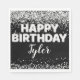 Svartvit födelsedagsfest blöjor för en roligt party med ett modernt klassiskt utseende med glitter och folieballonger på pappra blöjor.