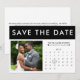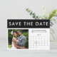 Svart och vit rand, bröllop spara datum-kort för färg med foto- och hjärtkalender. Anpassa den med din händelseinformation.