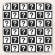 Svartvit monogramfrågetecken Riddle Riddler Monokrom blockutskrift