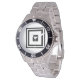 Den här attraktiva klockan har en contemporary abstrakt mönster av kapslade svarta och vita fyrkanter.