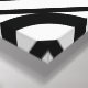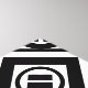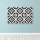 Fet geometrisk mönster har alternerande tjocka och tunna svarta diamanter med vitt utrymme mellan dem. De tjocka diamanterna innehåller var och en en tunn svart cirkel med ett tjockt likhetstecken vid en vinkel insida. De tunna diamanterna innehåller däremot en tjock svart cirkel som vidrör kant med ett tunt, lutat likhetstecken inuti. Digitalt skapat bild. Copyright © 2014 Claire E. Skinner. Alla rättigheter förbehållna.