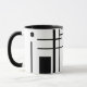 Denna kaffemugg skapades genom att använda ett av min konsttryck av svart geometriskt formar på en bakgrund av vit. Skapat av konstnären Kirt Tisdale.