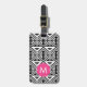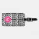 Tappa aldrig ur väskan igen! Vårt ögonlockande bagagetagg har ett modernt geometriskt stam mönster i skarpt svart och vitt med ett enda monogram på ett fuchsiskt rosa-märke. Lägg till kontaktuppgifter för fullt längst bak. Tittar du för detta på en annan produkt eller i ett annat färg? Kontakta mig via länken "Fråga den här designern" på den här sidan.