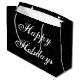 Julpresentsäck med svart och vit snö-fläck. Glad helg-texten kan vara personlig till vilket meddelande som helst, eller så går det att ta bort text för att skapa en papper presentväska varje dag.