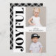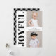 Snyggt, modernt helgdag-fotokort med "Glatt" i ett trendig, fet svart teckensnitt längs kortets lämnat sida. Anpassa kortets framsida genom att lägga till två av dina favoritfoton och ditt namn. Det söta helgdag går tillbaka till en chic vit plaid mönster med svart bakgrund. Designad att samordna med vår Glatta moderna helgdag-samling.