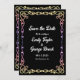 Den här elegantens inbjudan till bröllop spara datum är perfekt för ett modernt bröllop. Den enkla designen har en glödande nyans blommigt ram med vit elegant på svart bakgrund.