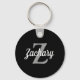 Den här nyckelkedjan för personlig har en inledande och vit namn i grått monogram på en svart bakgrund. En enkel, men utmärkande design för en man eller kvinna.