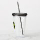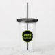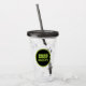 Modern, akryl tumlare med lock och dricksvattenhalm för högskolan eller högskolan student med svart och grön färg i skolan, med fet brev tryckt i kalkgrön på en svart cirkel med kalkgrön gräns.