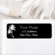 Mall för ditt namn och adress i klassisk elegant brev typsnitt. Modern svart och vit. Vit brev, elegant och svart bakgrund. Med två vita handflatan träd som dekorator. Lägg till ditt namn i din post, markera bokar och tillhörigheter etc. Du kan ändra bakgrunden färg om du vill. Klicka på "anpassa" och "Markera en bakgrund färg"