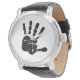 En ruta som visar en svarthandsutskrift eller en handflatan-utskrift på vit bakgrund. Designen är enkel och svart och vit.