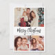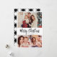 Rustic Minimal Black and White Calligraphy Script 3 Photo Collage julkort. Den här festliga, minimalistiska multifotochristmas-korten har söt tre (3) fotokollage, en "God jul" pläterad hälsning-text som är skriven med penselskript, handskriven teckensnittstyp. På baksidan stod mönster i svart och vit buffel. Hälsningskort för söt till din familj och dina vänner på Winter-Julhelgen.
