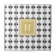 Svartvit harlequin mönster i Monogram guld Kakelplatta