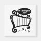 En grått- harp med 5 strängar. Svart musik noter ligger vid grund och den text som kan bytas ut överst.