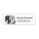 Adressetiketter med ett par svarta och vita hästar som hänger ihop. Illustrerad med vattenfärger.