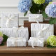 Den pappra inslagningen i bröllop visar en elegant och en sofistikerad mönster av hjärtlänkar i ett svart, pärlliknande och vitt färg-schema. Oavsett om det är för ett bröllop, en förlovning, en årsdag, Mors dag eller någon speciell händelse, så kommer den tidlösa inslagningen papper säkert att göra påstående. © Wafa Y. Dahdal - Med förbehåll för alla Höger.