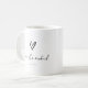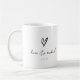 Elegant-handskriven skripttext och penseldrag används för att skapa biet i denna vackra, moderna bröllop-svit. Kaffet mugg som visas här i svartvitt har en mall som gör det enkelt att lägga till ditt favoritcitat från kärlek, namn och bröllop. Hjärtformer i hand plockade lägger till ytterligare en roligt. Sök i ID940 om du vill visa alla produkter i den här uppsättningen för bröllop.