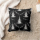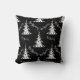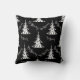 En mycket contemporary julkudde, denna kudde, har ett svart och vitt mönster av mycket modernt, vitt Julgranar som är utspridd över en kontrasterande svart bakgrund, med ett glatt hälsning av "Be Merry" i vit typografi överallt.