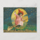 Fullt är ute och det är en söt liten flicka som flyger om! Den här vintagen Halloween-utskriften skildrar en liten flicka utklädd till en häxa som flyger runt med sin svarta katt. Stjärnorna och fullt är närvarande för att tända hennes spöktimflygning.