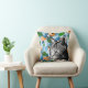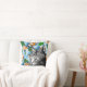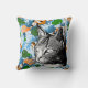 Roligt dekorativ kudde med en snyggt japansk koifisk i en damm mönster och en trendig kattillustration i svartvitt.