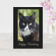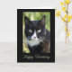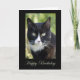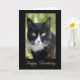 Svarta och vita katten på ett tomt Grattis på födelsedagen-kort. Underbarare för en kattälskares födelsedag.