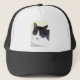 En vattenfärgsmålning av en svart och vit tuxedo kattunge lägger märke till den här hatten!
