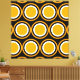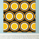 Den här fet designen av roligten har stora halvljusa golden-gulter med hög ljusstyrka i sidled, omgivna av tredubbelt vitt, svart och guldfärgat gult, koncentrerat ring gräns. Bakgrunden är svart.