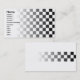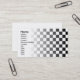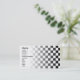 Visitkort med svartvit rutig design.
