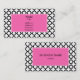 Svart och vit kattrefoil mönster. Svart quatrefoil mönster på vitt.I mitten finns en shock rosa rektangel där du kan lägga till text.