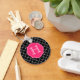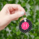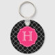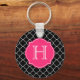 En svart och vit quatrefoil mönster har ett enda quatrefoil monogram ram som du kan anpassa med ditt första shock rosa.