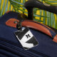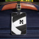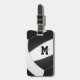 Den här volleyball-taggen lämpar sig för en flicka eller pojke och har en realistisk bild av en mycket överdimensionerad volleyball som har svarta och vita paneler - personanpassa med spelare namn och monogram på framsidan, adress och mobila nummer på baksidan - av katz_d_zynes
