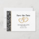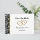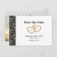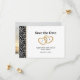 Svartvit Löv konturaccent Gräns Spara datumkortet är ett elegant sätt att tillkännage din svartvita bröllop-händelse. Den svarta bakgrunden förstärks av abstrakt vita bladkonturer i vitt, skapande ett infångande gräns. Den vita texten fält är delikaterat inramad i det tunna Aztec guld färg. Samtidigt är parets initialer inramad av förreglande hjärtan. Detta följs av datumet till sparan, platsen där evenemanget kommer att ta ställe och att mer information kommer att följa. Den omvända sidan har paret i solnedgång med namn i skript som är överliggande. Du kan anpassa texten och bilden så att kortet blir unikt för ditt meddelande i bröllop. Om du vill ha mer inspiration från bröllop-planeringen kan du gå till www.KBMD3signs.com. För förfrågningar eller hjälp från anpassad design, kontakta oss på info@KBMD3signs.com.