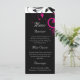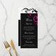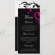 Dold och slående modern magenta för contemporary och svarta menykort för bröllop med vita accenter, med delikat bakgrund för löv vid rulla. Anpassa onlinen med information om din bröllopsmottagningsmeny.