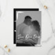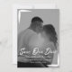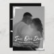 Fira kärlek med det här anpassadet Spara datumkortet, med en fullt svart och vit bild som du kan ändra för ditt eget bild. Fotot har en svart övertäckning som ge det till en unik blandning av grunge och alternativ estetik, perfekt för par som söker ett icke-traditionellt vibe för sin speciella dag. Det slående hörnet ramar, som har skapats från vita penseldrag, tillför designen en aning konstnärligt fläkt, skapar en visuellt bedövande kontrast mot mörkens bakgrund. Oavsett om du planerar en Halloween, fall, vinter eller gotisktemat bröllop, anger det här kortet tonen med sin mörk och moody ambians. Handmålad inslag, inklusive initialerna "Spara our Date", ger personlig beröring, medan elegant-manusmanusfotografi visar namnen på bruden och brudgummen. På den omvända sidan finns en slimmad svart bakgrund som är försedd med parets namn i manusgrafi, framtagen med vita penseldrag för en sammanhängande avsluta. Med alternativet att ta bort den svarta övertäckningen kan du med den här mallen anpassa dina inställningar till kostym. Du kan helt enkelt välja att anpassa designen ytterligare med Design Verktyg. Oavsett om du gillar mörkret eller väljer ett mer traditionellt utseende ser det här Spara datumkortet till att kärlek lyser igenom. Fånga kärnan i romantik och ställ in scenen för dina kommande påhopp med den här oförglömliga designen. Beställ nu och markera början av resan tillsammans med en formell inbjudan att följa.