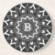 Vit cirkelcirkel mandala på en svart bakgrund med monogram av anpassade som tillval.