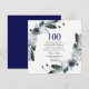 Blå svarta vita Blommigten 100:e födelsedagsmatchningen Inbjudan i Niche- och Nest-butiken. Boho Chic Navy Blue White Blommigt Wreaths Peonies Ro Watercolor Flowers